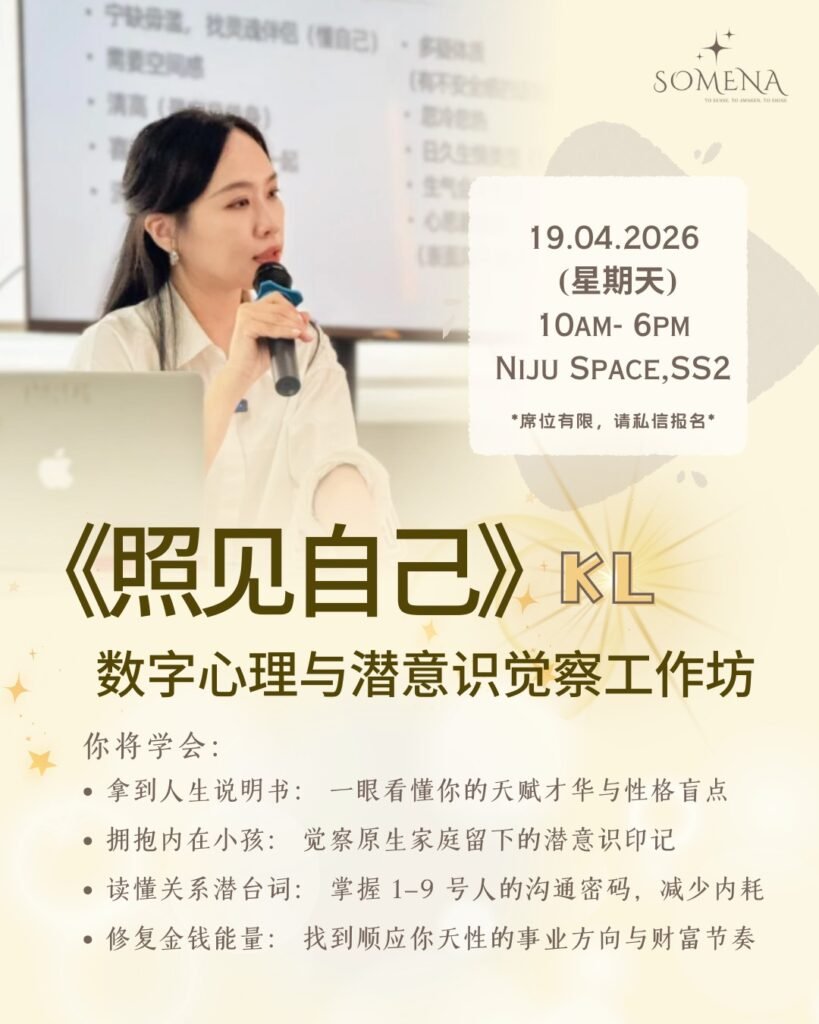 • 专属实体讲义(含独家觉察练习手册)+ 独家1-9号人录播课(价值RM199)